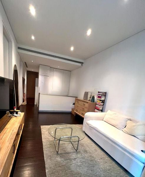 This well-maintained unit features a fully-furnished bedroom with a dedicated study area, a bathroom adorned with stone-look wall tiles, a rain shower, and a stylish floating vanity. The kitchen boasts high-gloss cabinetry, integrated appliances, and a breakfast bar, perfect for both cooking and entertaining.