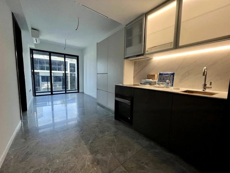 Step into a world of modern elegance as you enter this brand-new 1-bedroom unit at THE M. The abundant natural light floods the open-concept living area, highlighting the exquisite marble-look floor tiles and seamless access to a spacious balcony with serene pool views. The minimalist design creates a tranquil ambiance, perfect for relaxation and entertaining.