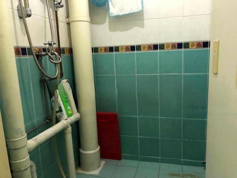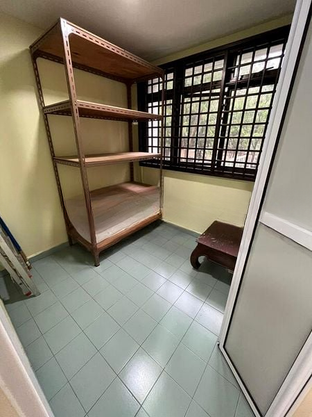 This well-maintained unit features an efficient 3-bedroom layout, including a master bedroom with an en-suite bathroom. The modern kitchen boasts grey cabinetry and an L-shaped design, complemented by a dedicated service yard for added convenience. Notable highlights include stylish vessel sinks in the bathrooms and a central household shelter for optimal storage solutions.