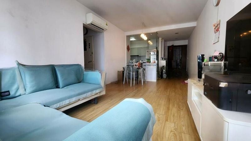 Step into a cozy haven at 28C Dover Crescent, where the inviting ambiance is enhanced by moderate natural light filtering through large windows. The living room, adorned with wooden flooring and an L-shaped sofa, seamlessly flows into the open-plan dining area, offering a perfect space for relaxation and gatherings. Enjoy urban and greenery views that create a serene backdrop to your daily life.