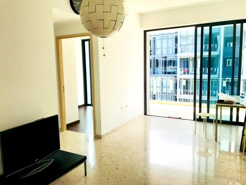 Step into a bright and airy sanctuary at The Luxurie, where abundant natural light floods through floor-to-ceiling windows, illuminating the marble-look polished flooring. The spacious living room seamlessly connects to a large balcony, offering unobstructed views of the pool and urban landscape, creating a perfect backdrop for relaxation or entertaining.
