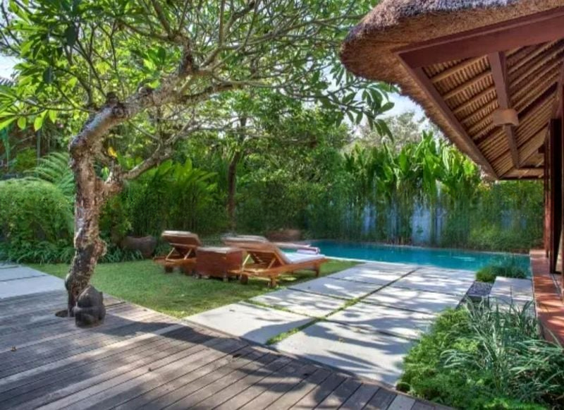 This well-maintained 5-bedroom, 6-bathroom condominium boasts standout features including a private swimming pool with turquoise tiles, an outdoor bar area, and a thatched roof pavilion. The spacious layout offers a seamless flow between the indoor and outdoor spaces, enhanced by the beautifully landscaped garden and wooden decking that invites you to unwind amidst nature.