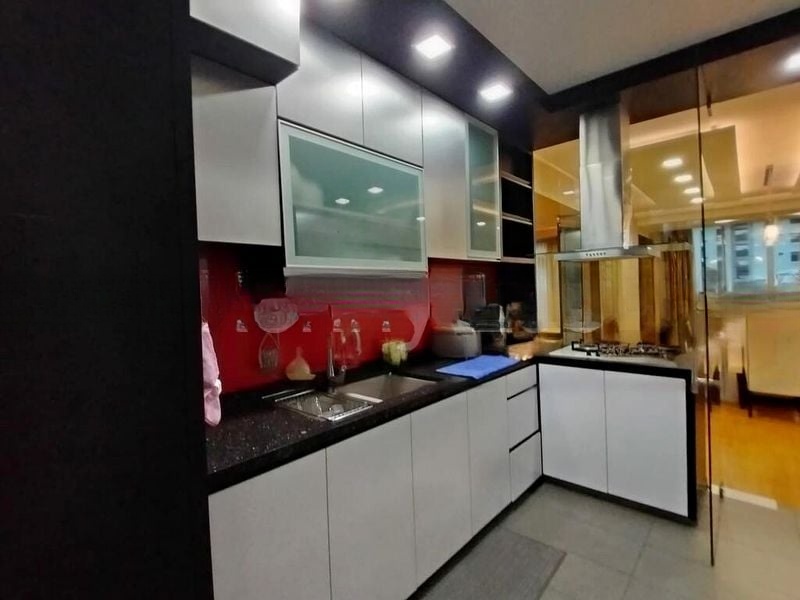Step into a beautifully renovated 3-bedroom flat that exudes modern charm and warmth. The moment you enter, you are greeted by a striking 3D wave pattern feature wall that sets the tone for the entire space. Natural light filters through the unit, illuminating the cozy living areas and highlighting the elegant finishes, including a stylish glass kitchen partition and a vibrant red glass backsplash.