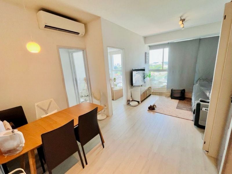 Step into a bright and airy sanctuary at CITYLIGHTS, where abundant natural light floods the open-concept living and dining area. With light wood-look flooring and large windows adorned with roller blinds, you’ll feel an immediate sense of calm and spaciousness. The unblocked panoramic views of the city skyline, lush greenery, and the inviting swimming pool create a serene backdrop for your everyday life.