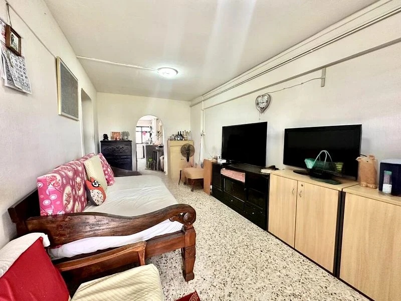 Step into a world of nostalgia as you enter this charming HDB flat, where classic terrazzo flooring greets you with a warm embrace. The spacious living room, bathed in moderate natural light, flows seamlessly into an inviting balcony that offers serene views of lush greenery and the nearby park. The traditional ambiance is complemented by archway transitions that add character to the space, making it feel both homely and welcoming.
