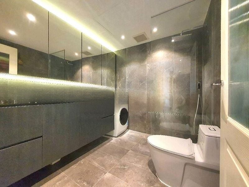 Step into a world of sophistication as you enter this beautifully renovated unit at The Plaza. The abundant natural light floods through the floor-to-ceiling windows, showcasing breathtaking views of Kallang Basin, the Singapore Sports Hub, and the vibrant city skyline. The modern ambiance is accentuated by a textured feature wall and stylish furnishings, creating a welcoming atmosphere that feels both luxurious and comfortable.