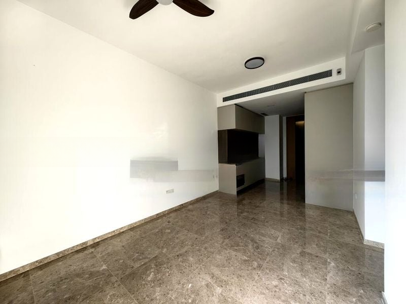 This spacious 3-bedroom, 4-bathroom condominium features an open-concept living and dining area seamlessly integrated for modern living. The marble flooring adds a touch of sophistication, while the large balcony invites you to unwind and soak in the panoramic vistas. Each bedroom boasts large windows that frame stunning city views, complemented by contemporary bedside lighting that enhances the serene atmosphere.