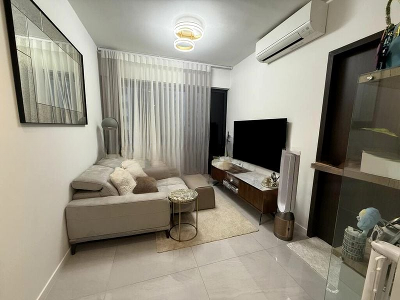 Step into a world of modern elegance as you enter this meticulously maintained unit at The Florence Residences. Bathed in abundant natural light, the open-concept living room invites you to relax and enjoy the stunning cityscape and greenery views from the balcony. The polished tile flooring and minimalist finishes create an ambiance that is both inviting and sophisticated.