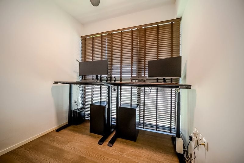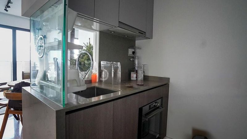 Step into a world of modern elegance as you enter this beautifully renovated unit at Avenue South Residence. Bathed in abundant natural light, the high ceilings and floor-to-ceiling windows create an airy ambiance that invites you to relax and enjoy the breathtaking panoramic city views. The marble-look floor tiles and stylish pendant lighting enhance the minimalist decor, making this space a true urban sanctuary.
