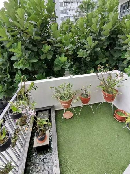 This efficient 3-bedroom layout boasts standout features such as a spacious living room with an L-shaped sofa and massage chair, a master bedroom with a tufted leather headboard, and a loft bed in the secondary bedroom that cleverly integrates a study area. The cove lighting and built-in wine rack add a touch of sophistication, while the utility room and yard provide practical living solutions. Enjoy the luxury of an en-suite master bathroom and a balcony perfect for relaxation.