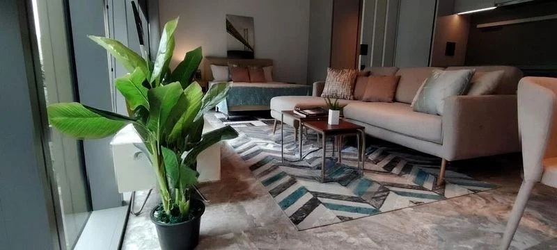 Step into a world of elegance as you enter this beautifully designed unit at Cuscaden Reserve. The abundant natural light floods through the floor-to-ceiling windows, illuminating the marble flooring and creating a warm, inviting ambiance. The open-concept living area, complete with a tan leather sofa and a grand piano, seamlessly integrates with the dining space, making it perfect for entertaining while enjoying breathtaking views of the urban landscape from your private balcony.