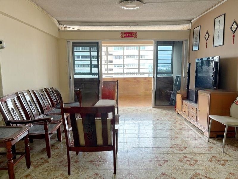 Step into this inviting 2-bedroom flat and be greeted by the warmth of vintage patterned floor tiles that flow throughout the living space. Natural light filters through the windows, casting a gentle glow on the fully-furnished interiors, creating a functional yet lived-in ambiance. Enjoy views of lush greenery from your living room, perfect for unwinding after a long day.