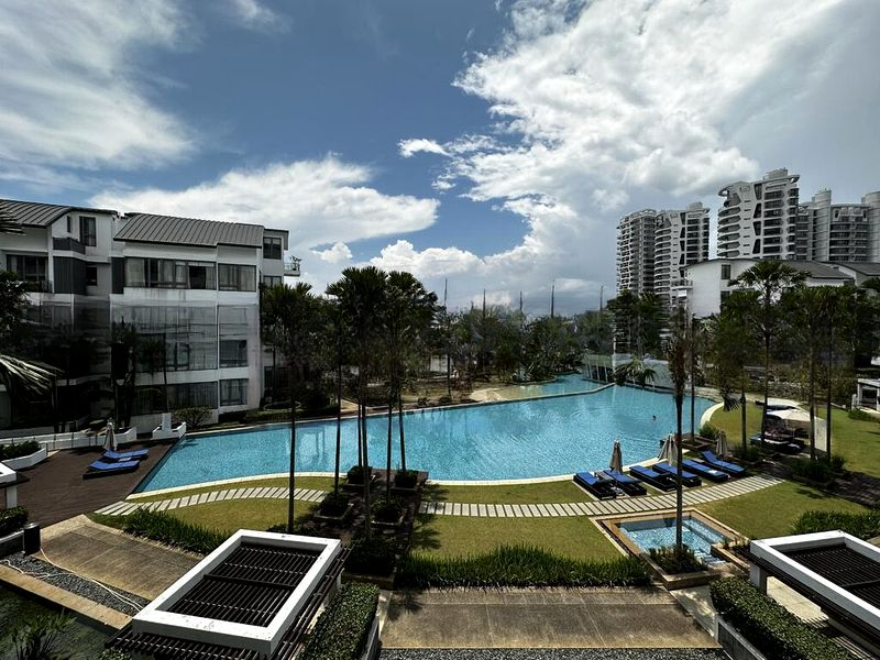 This spacious 5-bedroom, 4-bathroom unit spans 2,185 sqft and features standout areas such as a private marina, a large swimming pool surrounded by palm trees, and a wooden boardwalk that invites leisurely strolls. The glass balcony railings offer unobstructed views, making every moment spent here a visual delight. The unfurnished space provides a blank canvas for your personal touch, allowing you to create your dream home.