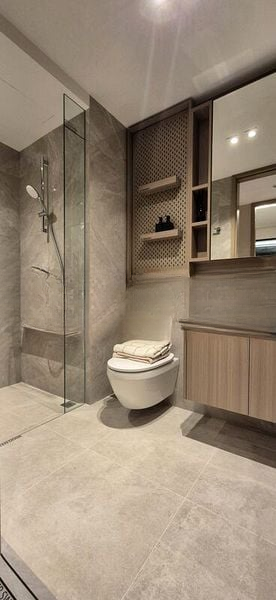 This thoughtfully designed 3-bedroom condo features a master bedroom with a plush platform bed and integrated LED lighting, complemented by a luxurious walk-in shower in the bathroom. The second bedroom boasts a unique mural wall and a cozy layout, while the walk-in closet with glass-fronted wardrobes adds a touch of sophistication. Enjoy the convenience of a stacked washer and dryer in the dedicated laundry area, ensuring functionality meets style.