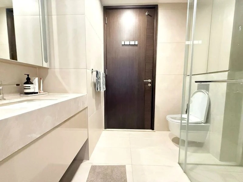 Step into a world of modern elegance as you enter this beautifully renovated 2-bedroom unit at Daintree Residence. The open-concept living area welcomes you with its marble-look floor tiles, bathed in natural light, and offers seamless access to a balcony that overlooks lush greenery. The ambiance is both inviting and sophisticated, perfect for relaxation or entertaining.