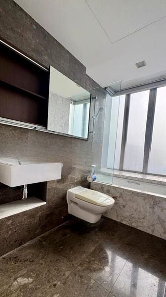 This well-maintained 2-bedroom, 2-bathroom layout features standout rooms that cater to modern living. The open-plan living and dining area seamlessly connects to a private balcony through sliding glass doors, while the master bathroom boasts a luxurious bathtub and a glass shower enclosure. With built-in wardrobes and open shelving in the bedrooms, there is ample storage without compromising on style.
