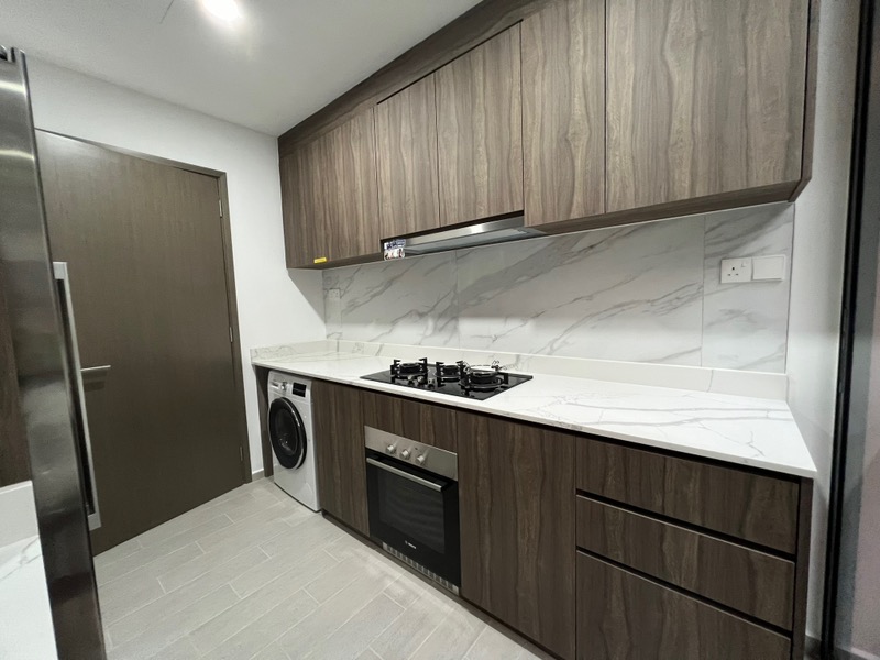 Step into a world of elegance and tranquility as you enter this stunning modern minimalist unit at Affinity at Serangoon. Bathed in abundant natural light, the double-volume ceilings and floor-to-ceiling windows offer breathtaking views of lush greenery, creating a serene ambiance that instantly captivates. The polished porcelain tiles and sleek finishes exude sophistication, while the wooden slat feature wall adds warmth and character to the space.