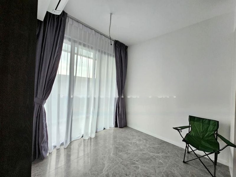 Step into a world of elegance as you enter this brand-new unit at THE M. The modern minimalist design greets you with marble-look floor tiles that reflect natural light, creating an inviting ambiance. Large windows in the living area and bedroom offer a serene view, while double-layer curtains provide privacy without sacrificing brightness.