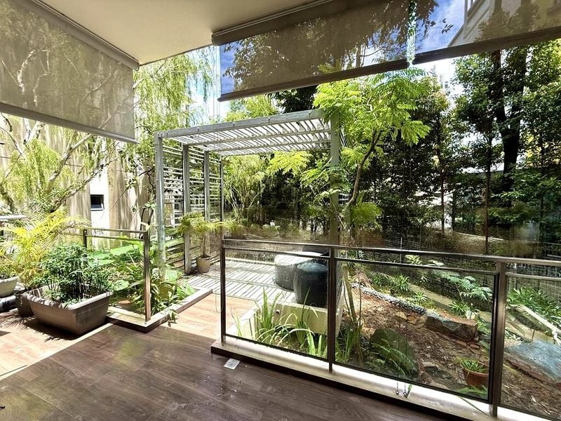 Step into a sanctuary of light and space at The Miltonia Residences, where abundant natural light floods the open-concept living and dining areas, creating a bright and airy ambiance. The large balcony, adorned with a stylish pergola and wooden decking, invites you to unwind while enjoying serene views of lush greenery, making it the perfect spot for outdoor dining or lounging.