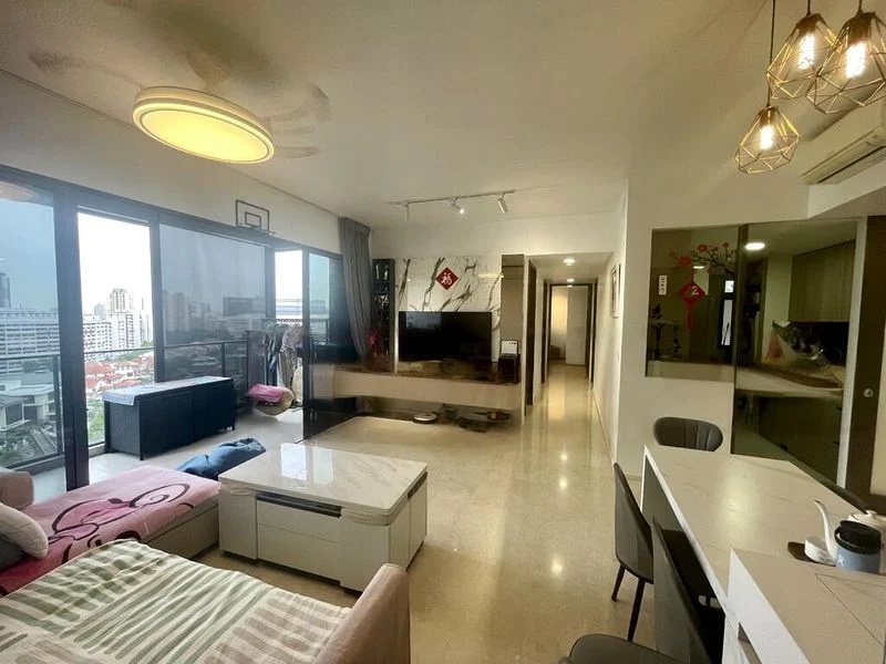 This well-maintained 4-bedroom, 4-bathroom unit features standout elements such as custom built-in cabinetry, under-bed LED lighting, and a galley kitchen equipped with integrated appliances. Each bedroom is thoughtfully designed, with the master suite boasting an upholstered headboard and mirrored wall, while the additional bedrooms include integrated study desks and ample storage. The balcony offers a perfect spot to unwind, with panoramic views of the park and city skyline.
