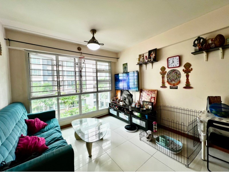 Step into this well-maintained 2-bedroom unit at 672B Edgefield Plains, where a clean and functional ambiance greets you. The moderate natural light filters through large windows, illuminating the white walls and tiled flooring, while the urban views of neighboring HDB blocks create a vibrant backdrop for your daily life.