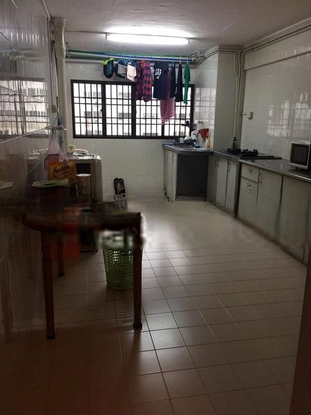 Step into a world of simplicity and functionality as you enter this spacious 3-bedroom flat at 435 Clementi Ave 3. The classic terrazzo flooring greets you with a timeless charm, while the moderate natural light fills the living space, creating a warm and inviting ambiance. The black leather L-shaped sofa and red glass-topped coffee table in the living room offer a cozy spot for relaxation.