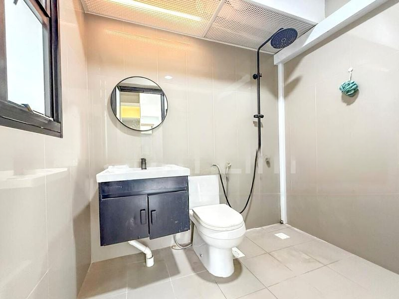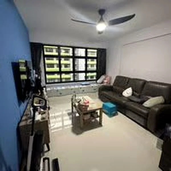 Step into a warm and inviting atmosphere where modern elegance meets comfort. This well-maintained 4-bedroom HDB flat boasts a cozy ambiance, enhanced by designer pendant lighting and a feature TV wall with wood accents. Natural light filters through the open-concept living area, highlighting the white tiled flooring and creating a welcoming space for family gatherings.