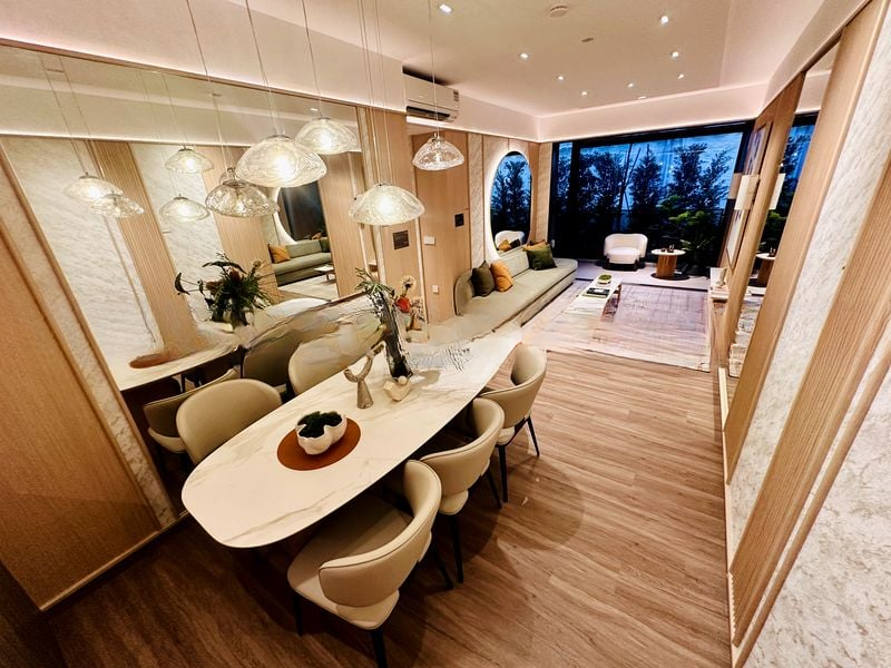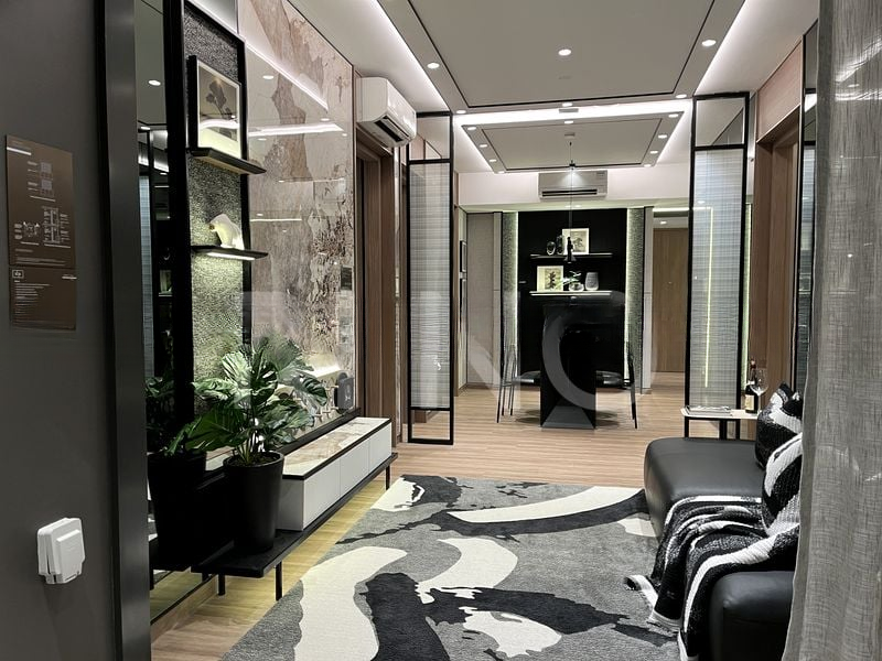 Step into a world of modern luxury as you enter this brand-new designer unit at ELTA. Bathed in abundant natural light, the space exudes a resort-like ambiance, with breathtaking views of the infinity-edge pool and lush greenery juxtaposed against the vibrant city skyline. The timber-clad ceilings and ambient floor lighting create an inviting atmosphere, perfect for relaxation and entertaining.