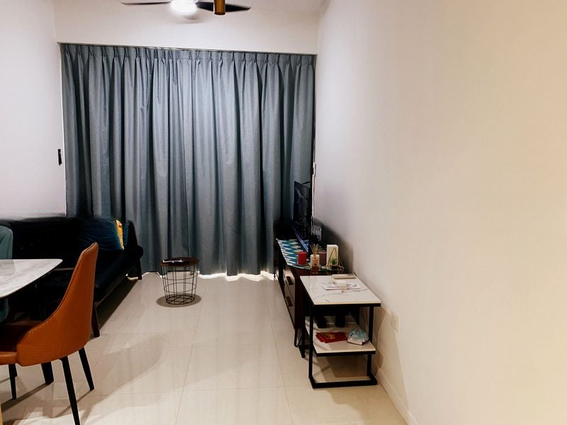 This well-maintained 1-bedroom unit features a smart layout with a fully-furnished bedroom that boasts a built-in sliding wardrobe and large windows fitted with sheer and blackout curtains for optimal privacy. The modern bathroom is a highlight, featuring a luxurious walk-in shower with a rain shower head, complemented by contemporary wood-look wall tiles. The kitchen is a culinary delight, equipped with two-tone cabinetry, an integrated microwave, and stainless steel appliances, perfect for both cooking and entertaining.