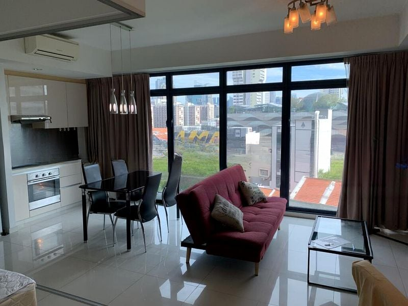 Step into a world of light and tranquility in this well-maintained 1-bedroom unit at City Square Residences. The moment you enter, you are greeted by abundant natural light streaming through large floor-to-ceiling windows, creating a bright and airy ambiance that instantly uplifts your spirits. The tasteful furnishings, including a decorative floor lamp and patterned cushions, enhance the inviting atmosphere, while views of lush greenery and neighboring buildings provide a serene backdrop.