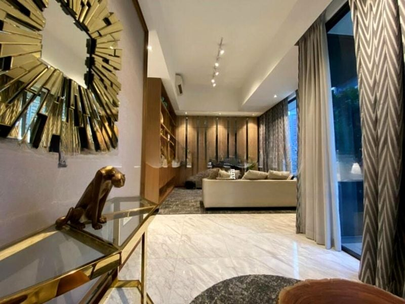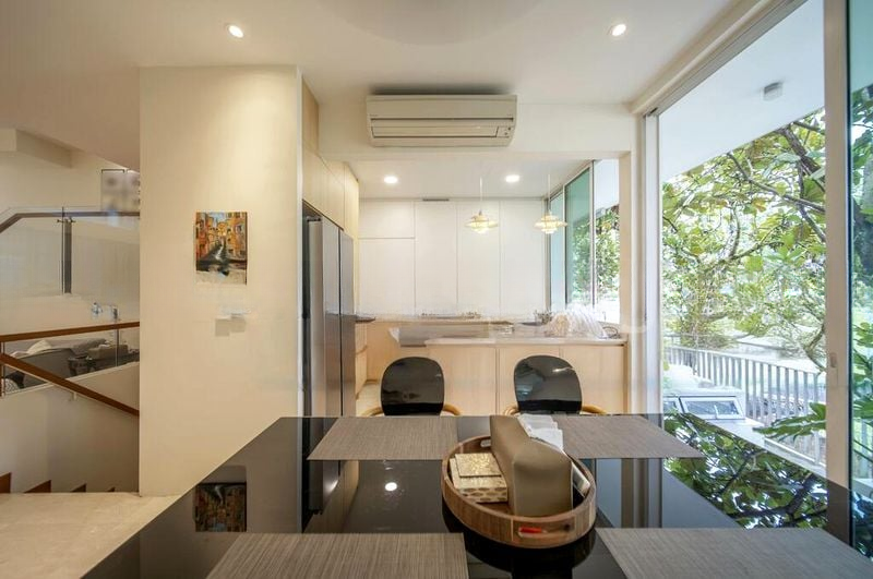 Step into a world of potential in this expansive 4-bedroom landed home, where abundant natural light floods through the impressive floor-to-ceiling windows. The bright and airy ambiance is complemented by polished dark marble flooring and high ceilings, creating a welcoming atmosphere that invites you to envision your dream living space. Enjoy views of lush greenery and the urban skyline, setting the perfect backdrop for your daily life.