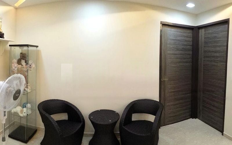 Step into a world of modern elegance as you enter this beautifully renovated HDB flat. The open-concept living room greets you with a designer false ceiling adorned with geometric LED strips, creating an inviting ambiance. Natural light filters through large windows, illuminating the space where a large L-shaped sofa and an eye-catching aquarium take centre stage.