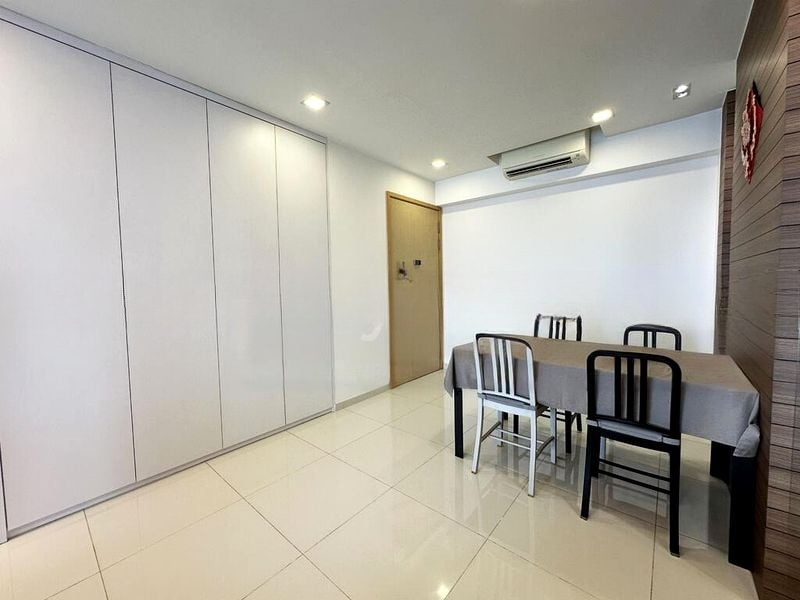 Step into this beautifully renovated unit at Esparina Residences, where abundant natural light floods the space, highlighting the modern minimalist finishes. The open layout offers a seamless flow from the living area to the balcony, showcasing unblocked views of lush greenery and the surrounding residential landscape.