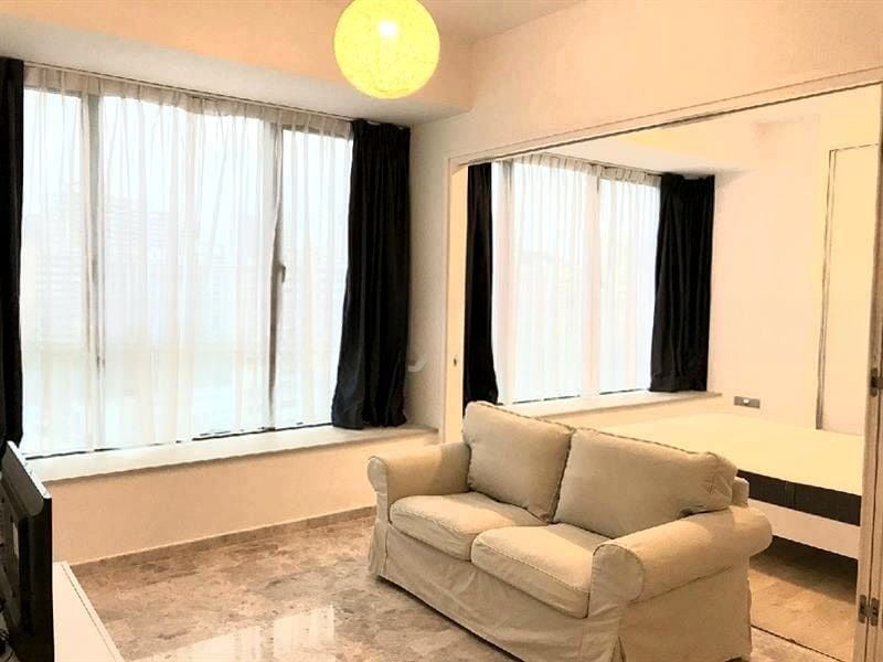 Step into a world of elegance as you enter this beautifully renovated unit at Skyline Residences. Bathed in abundant natural light, the open layout showcases stunning panoramic views of the sea, harbor, and lush greenery through floor-to-ceiling windows. The modern minimalist ambiance is enhanced by marble-look flooring and a tranquil balcony featuring a decorative water feature, perfect for relaxation.