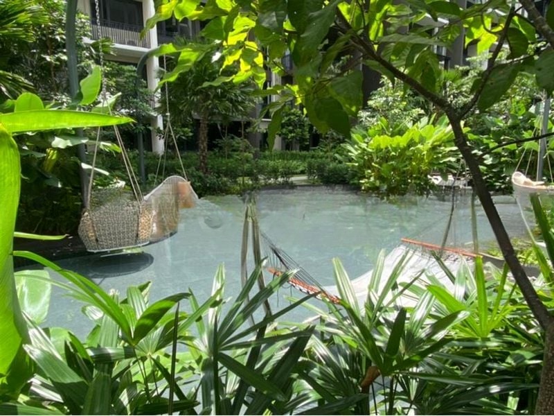 This thoughtfully designed 2-bedroom, 1-bathroom layout boasts standout features such as a rain shower in the bathroom, built-in wardrobes in the bedroom, and an open-concept kitchen equipped with a built-in oven and induction hob. The spacious living area is perfect for entertaining, while the balcony offers a tranquil garden view, providing a peaceful escape from the urban hustle.
