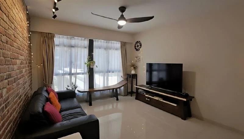 Step into this beautifully renovated 4-room HDB unit and be greeted by a warm, inviting atmosphere. The exposed brick feature wall in the living room adds a touch of character, while large windows draped with sheer curtains allow natural light to filter through, creating a cozy haven. Enjoy urban views interspersed with greenery that enhance the overall charm of this home.