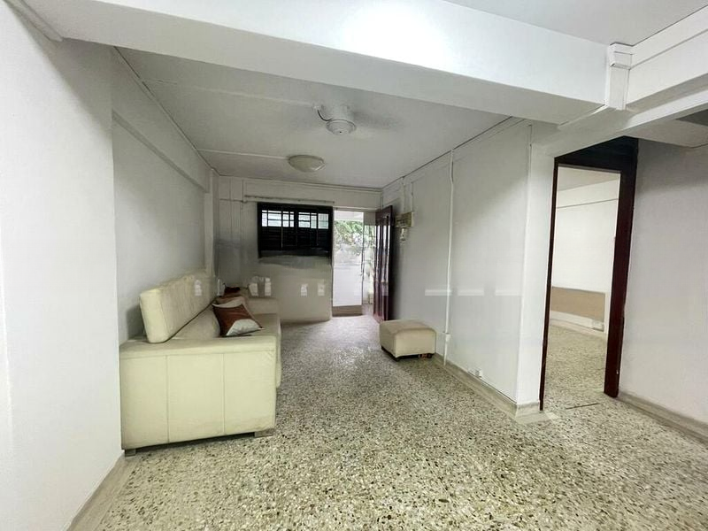 Step into this expansive 3-bedroom flat at 13 Marine Terrace, where the timeless elegance of marble flooring greets you at every turn. The spacious living room, adorned with a striking wood-paneled feature wall, is bathed in natural light from the large grid window, creating an inviting ambiance perfect for relaxation and gatherings. Enjoy the gentle breeze from the ceiling fan and the warm glow of wall lamps that enhance the cozy atmosphere.
