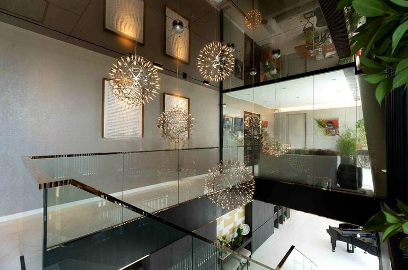 Step into a world of luxury as abundant natural light floods this exquisite unit, accentuating the designer finishes and open landscape views. The elegant ambiance is enhanced by a stunning green crystal chandelier and floor-to-ceiling windows that invite the beauty of nature indoors. Every corner of this well-maintained home exudes sophistication, from the mirrored ceilings to the dark wood wall paneling.