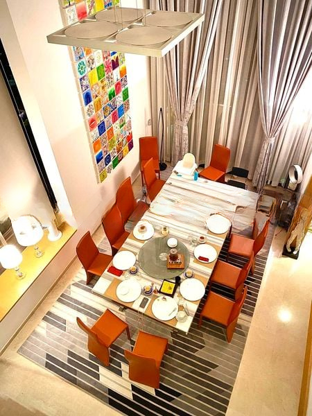 Step into a world of elegance as you enter this designer condominium, where abundant natural light floods the space through floor-to-ceiling glass walls. The bright and airy ambiance is complemented by panoramic views of the city skyline and lush greenery, creating a serene retreat amidst the urban landscape.