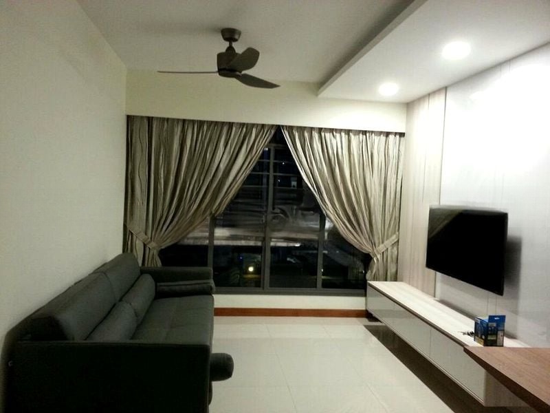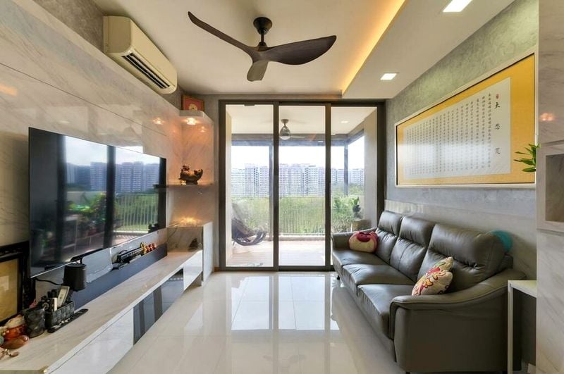 Step into a world of elegance and comfort as you enter this beautifully renovated unit at Rivercove Residences. The bright and airy ambiance is accentuated by abundant natural light streaming through large windows, illuminating the marble-look TV feature wall and the inviting leather sofa in the living room. Enjoy serene views of lush greenery and residential surroundings from the balcony, creating a peaceful retreat right at home.