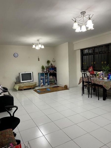 Step into a serene oasis where natural light filters through windows, illuminating the simple yet functional design of this well-maintained 3-bedroom flat. The inviting ambiance is enhanced by a monochrome TV feature wall in the living room, complemented by views of lush greenery that create a peaceful retreat from the bustling city.