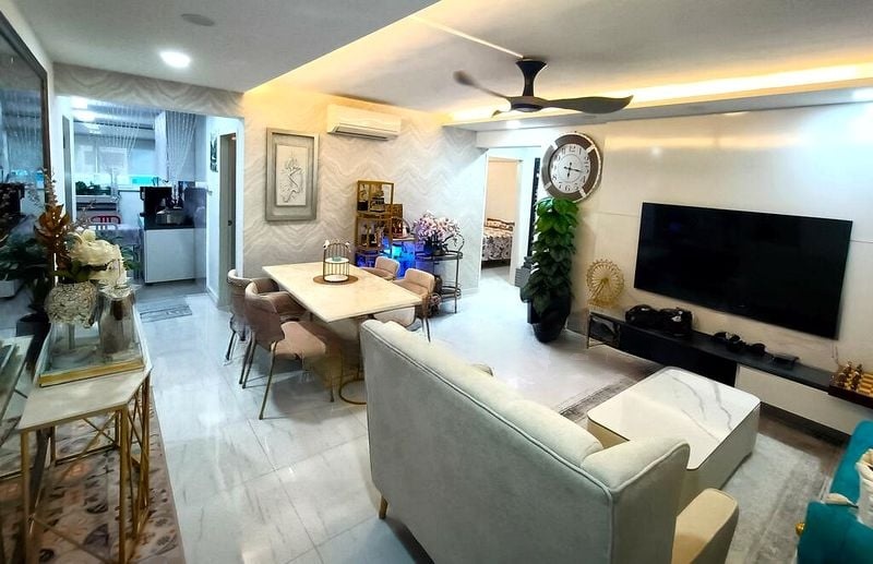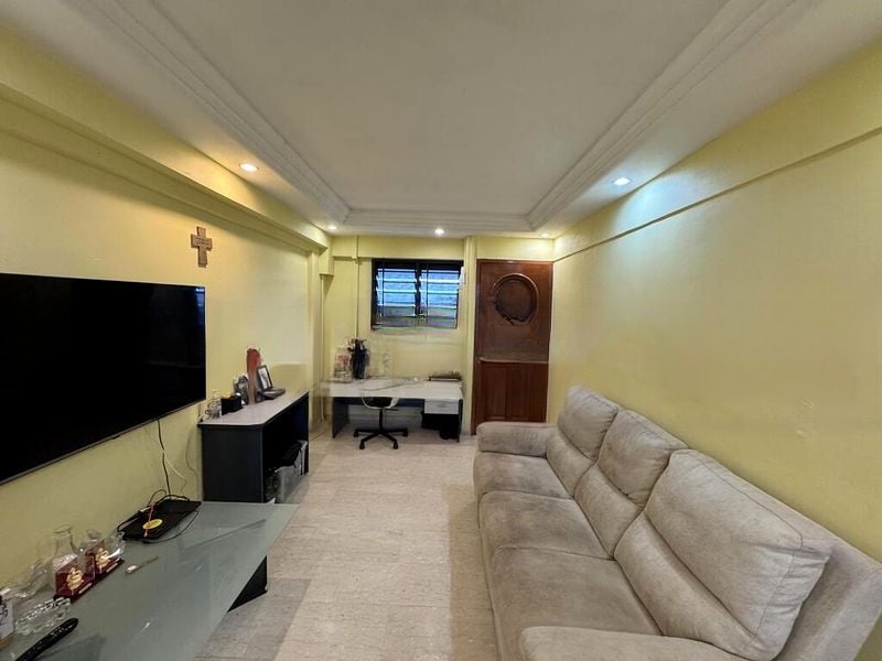 Step into a serene oasis where the gentle light filters through large windows, illuminating the spacious interiors of this HDB flat. The original finishes evoke a sense of nostalgia, while the unobstructed views of the reservoir and lush greenery create a peaceful ambiance that invites relaxation.