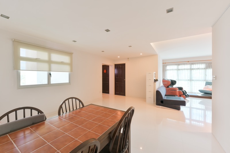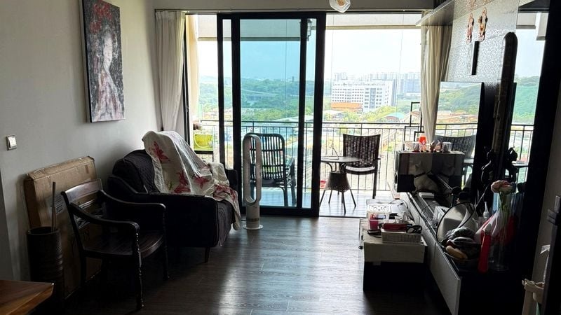 This well-maintained 3-bedroom, 3-bathroom condominium features an open-concept living room with elegant wood-look flooring and a modern pendant light, seamlessly connecting to the balcony. The kitchen is equipped with a gas hob and stainless steel fridge, complemented by ample pantry storage. Each bedroom boasts large windows and built-in shelving, while the bathrooms are designed with glass shower partitions for a touch of luxury.