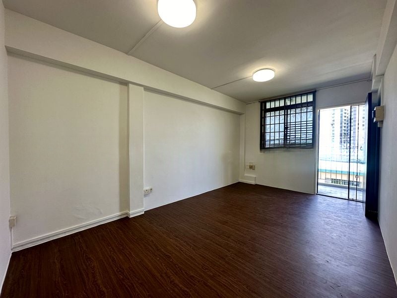 Step into this well-maintained 2-bedroom flat and feel the warmth of a functional, lived-in space. The moderate natural light highlights the modern wood-grain kitchen cabinetry and large format floor tiles, creating an inviting ambiance that welcomes you home.