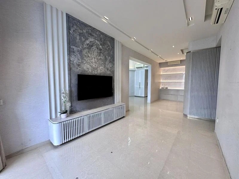Step into a world of modern elegance as you enter this stunning 3-bedroom unit at The Crest. The abundant natural light floods through the floor-to-ceiling windows, illuminating the polished tile flooring and highlighting the exquisite marble TV feature wall. The ambiance is a perfect blend of minimalist design and luxurious finishes, creating a serene retreat with views of the city skyline and lush greenery.