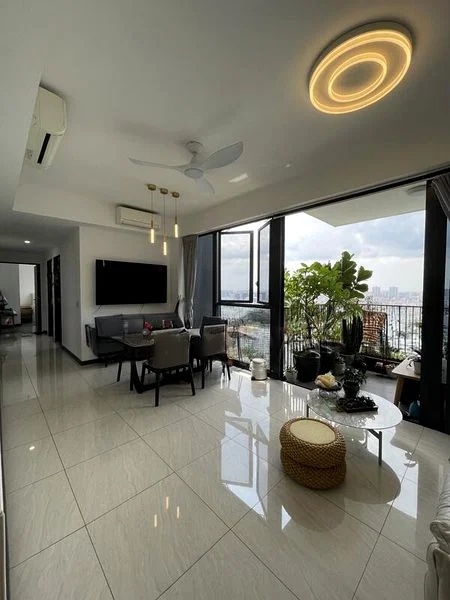 Step into this inviting unit at GEM RESIDENCES, where polished floor tiles reflect the soft glow of chandelier lighting, creating a warm and functional ambiance. The urban view from the balcony invites you to unwind, while the full-height curtains in the master bedroom enhance the cozy feel of the space.