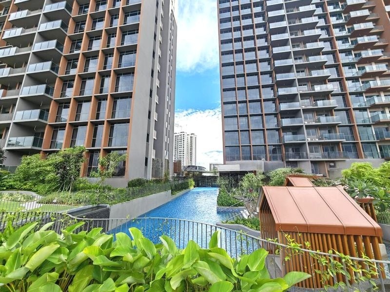 Step into a world of resort-style luxury as you enter this brand-new 2-bedroom unit at AMO RESIDENCE. Bathed in abundant natural light, the floor-to-ceiling glass walls offer breathtaking views of the infinity-edge swimming pool and lush greenery, creating a serene ambiance that invites relaxation and tranquility.