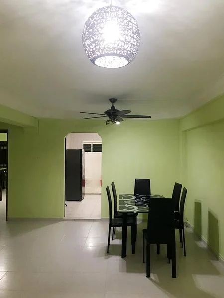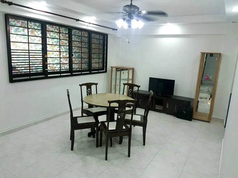 Step into this well-maintained 4-room HDB unit and be greeted by a warm ambiance that seamlessly blends functionality with traditional charm. The living and dining area, adorned with tiled flooring and a ceiling fan featuring integrated lighting, invites you to unwind while enjoying views of lush greenery and the urban landscape beyond. Floral window privacy films add a touch of elegance, ensuring a serene atmosphere throughout.