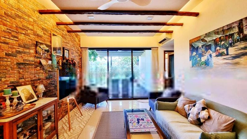 Step into a serene oasis at The Miltonia Residences, where abundant natural light floods the spacious living areas, highlighting the modern architectural facade and lush tropical landscaping. The inviting ambiance evokes a resort-style living experience, with stunning views of the pool, greenery, and golf course that create a tranquil retreat right at your doorstep.