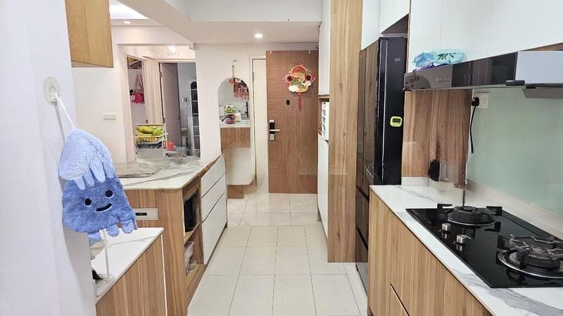 Step into a world of modern elegance as you enter this beautifully designed HDB flat. Abundant natural light floods the open-concept living area, accentuating the sleek finishes and creating an inviting ambiance. Large windows frame picturesque views of lush greenery, making every moment spent here feel serene and refreshing.
